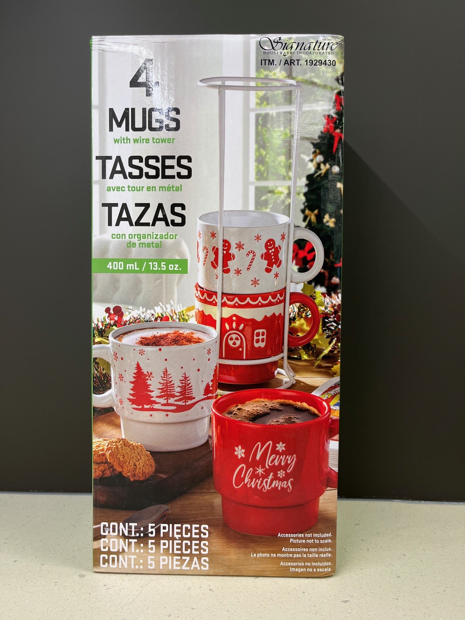 4 Mugs with Wire Tower