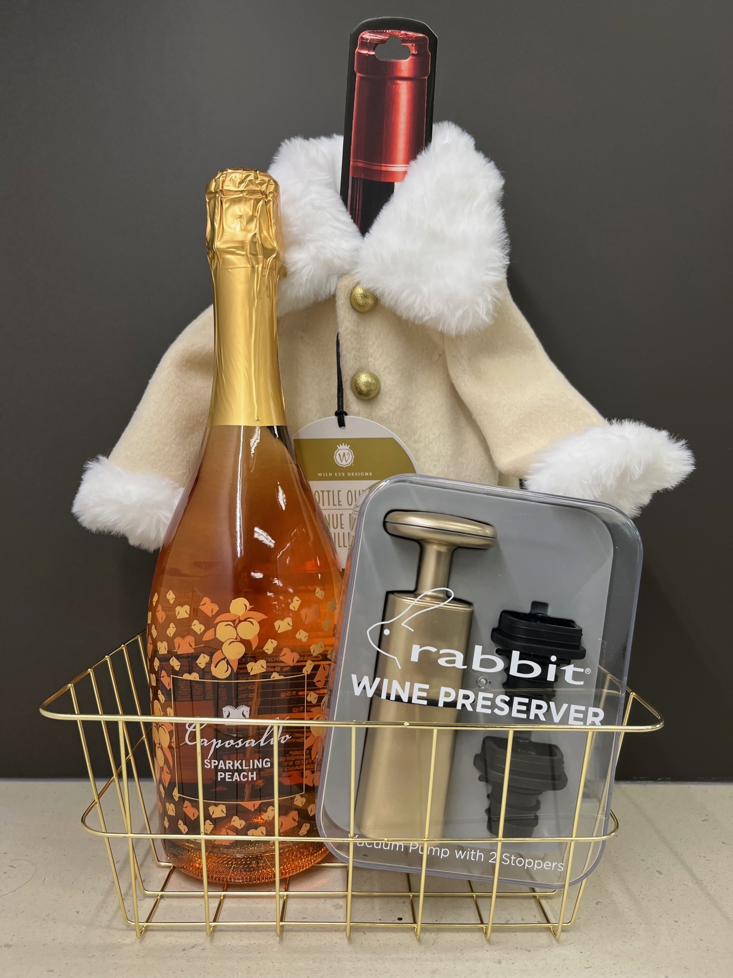 Just Peachy and Gold Wine Basket