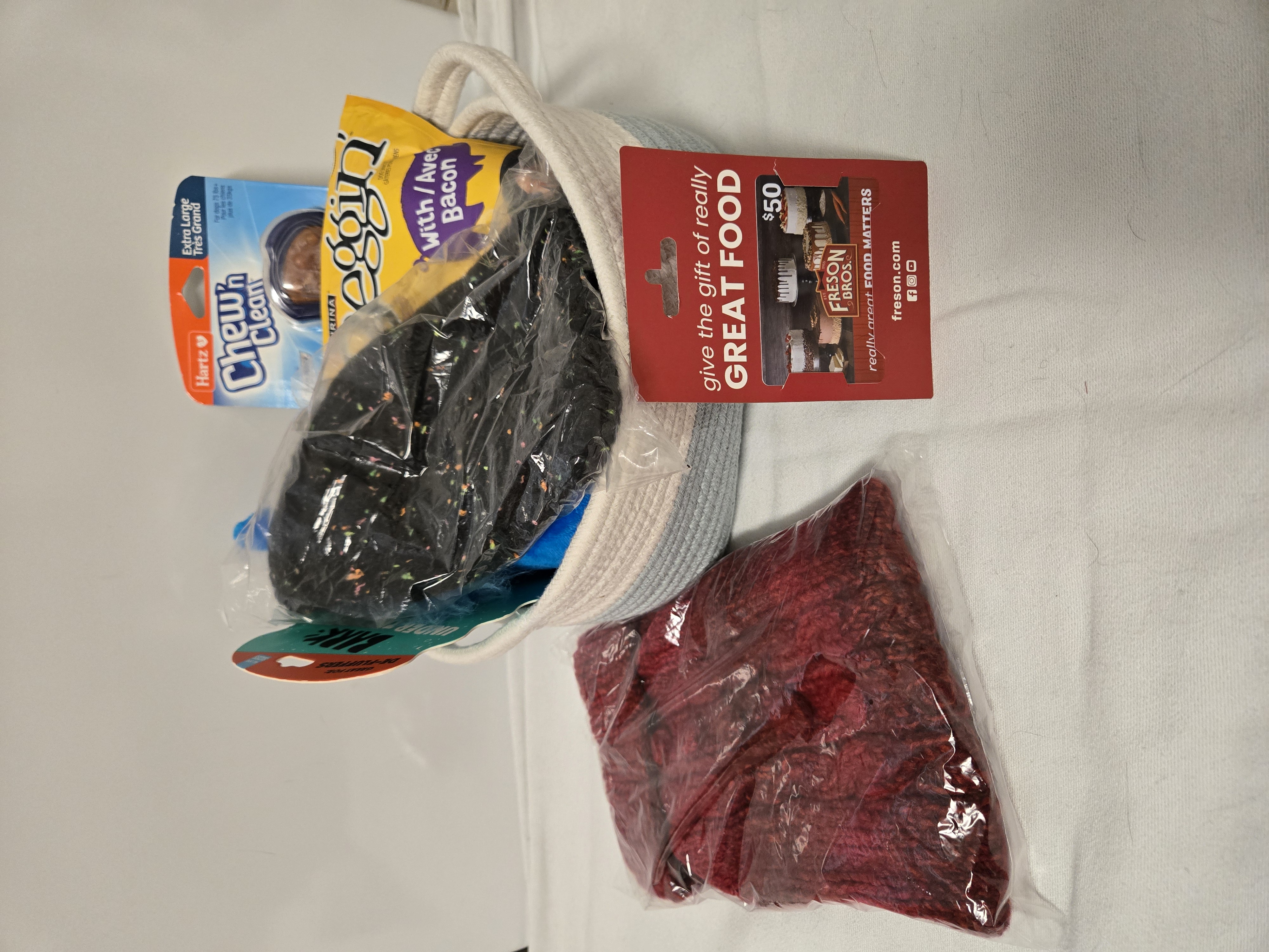 Spoil your dog with some treats, toys and sweaters from an anonymous donor and grab something for yourself with the gift card donated from Freson Bros.