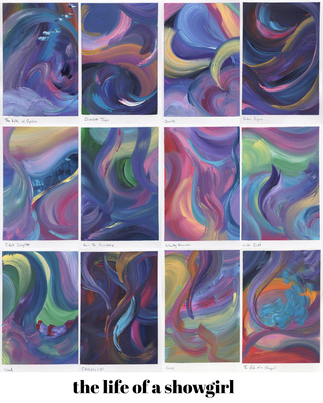 A set of 12 9x6 inch paintings from The Life of a Showgirl! The full price for this set would be $360, so I'd like to give the opportunity for a discount rate that's entirely up to you!