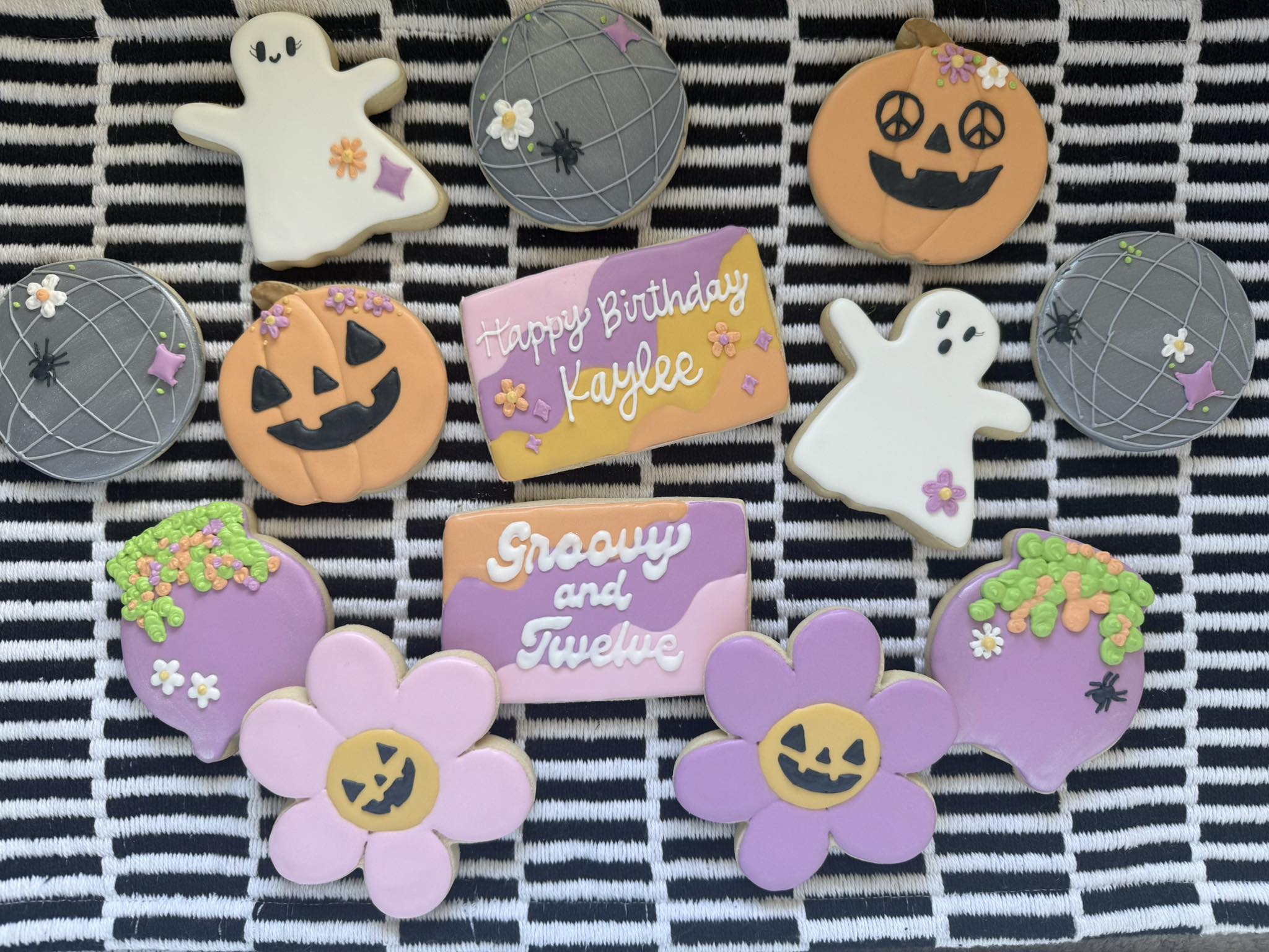 White bowl, Butter cookies, Milano cookies, loofah, scented soap, hand soap, shoert fizzies, foot mask, face mask, emory boards