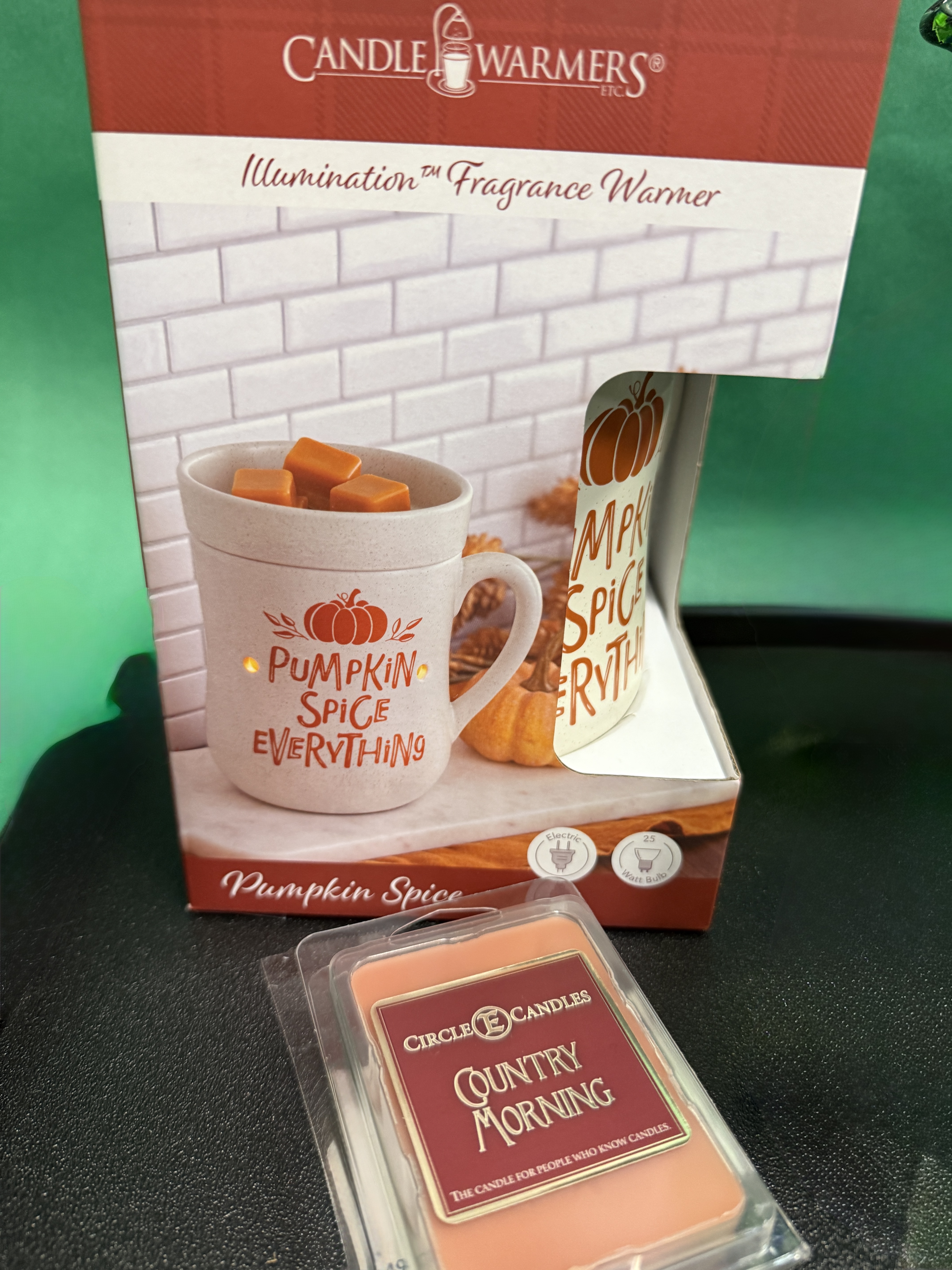 Pumpkin Spice Wax Warmer, Country Morning Wax Melts, Brown Butter Pumpkin car freshener, mug, soap