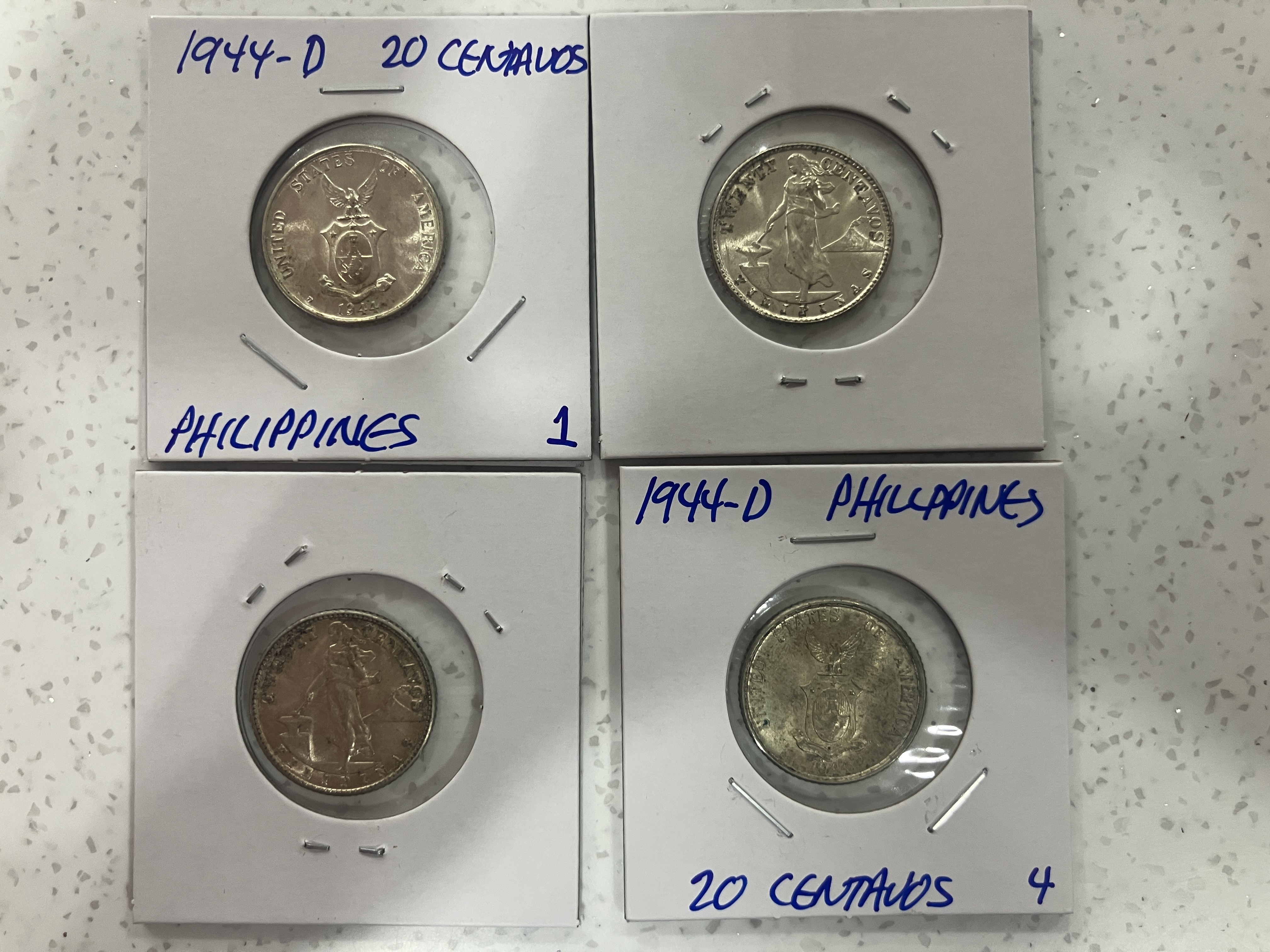 4-1944 silver 20 centavo coins
