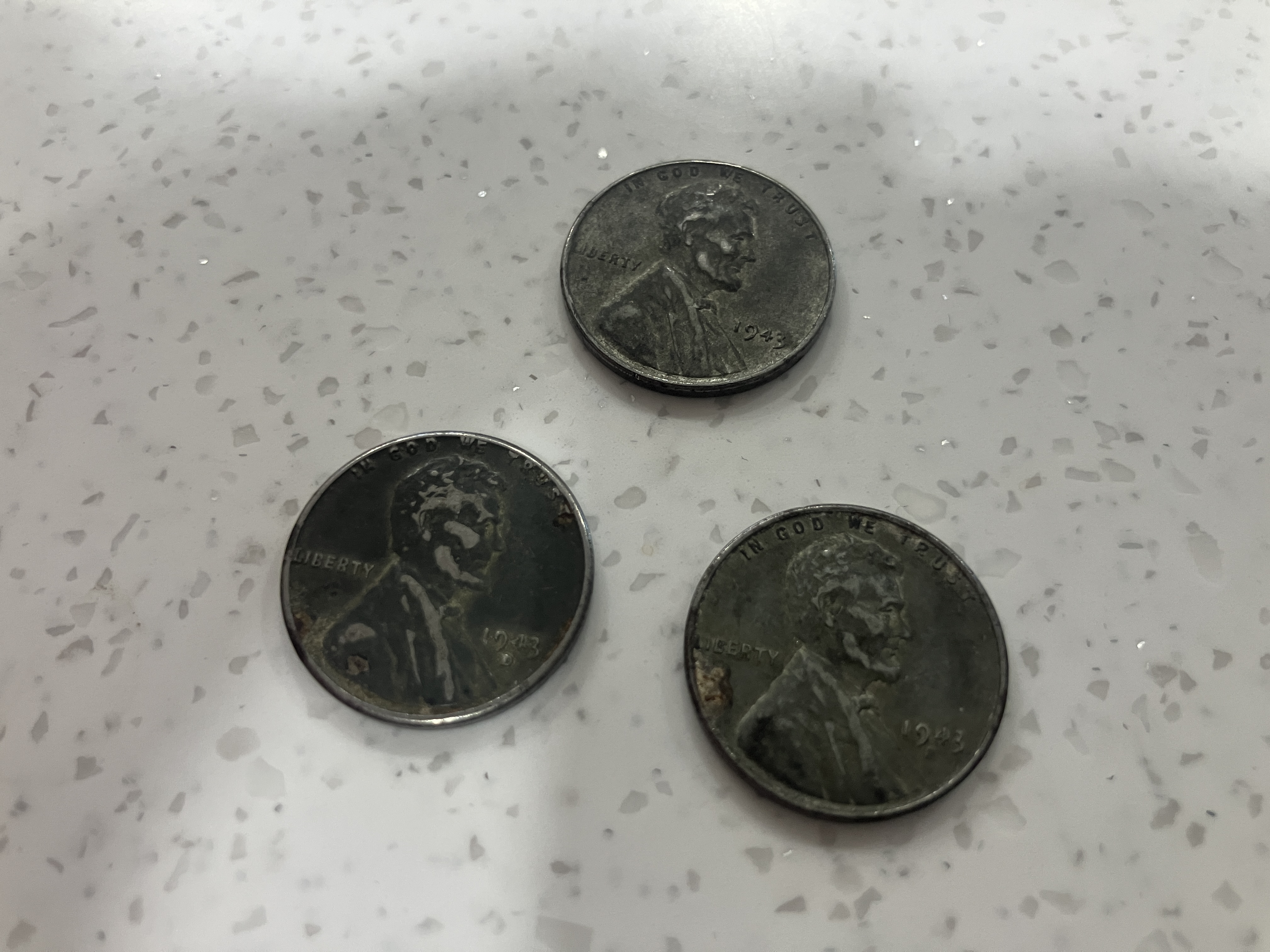 These 3 steel coins are pennies all from 1943.
