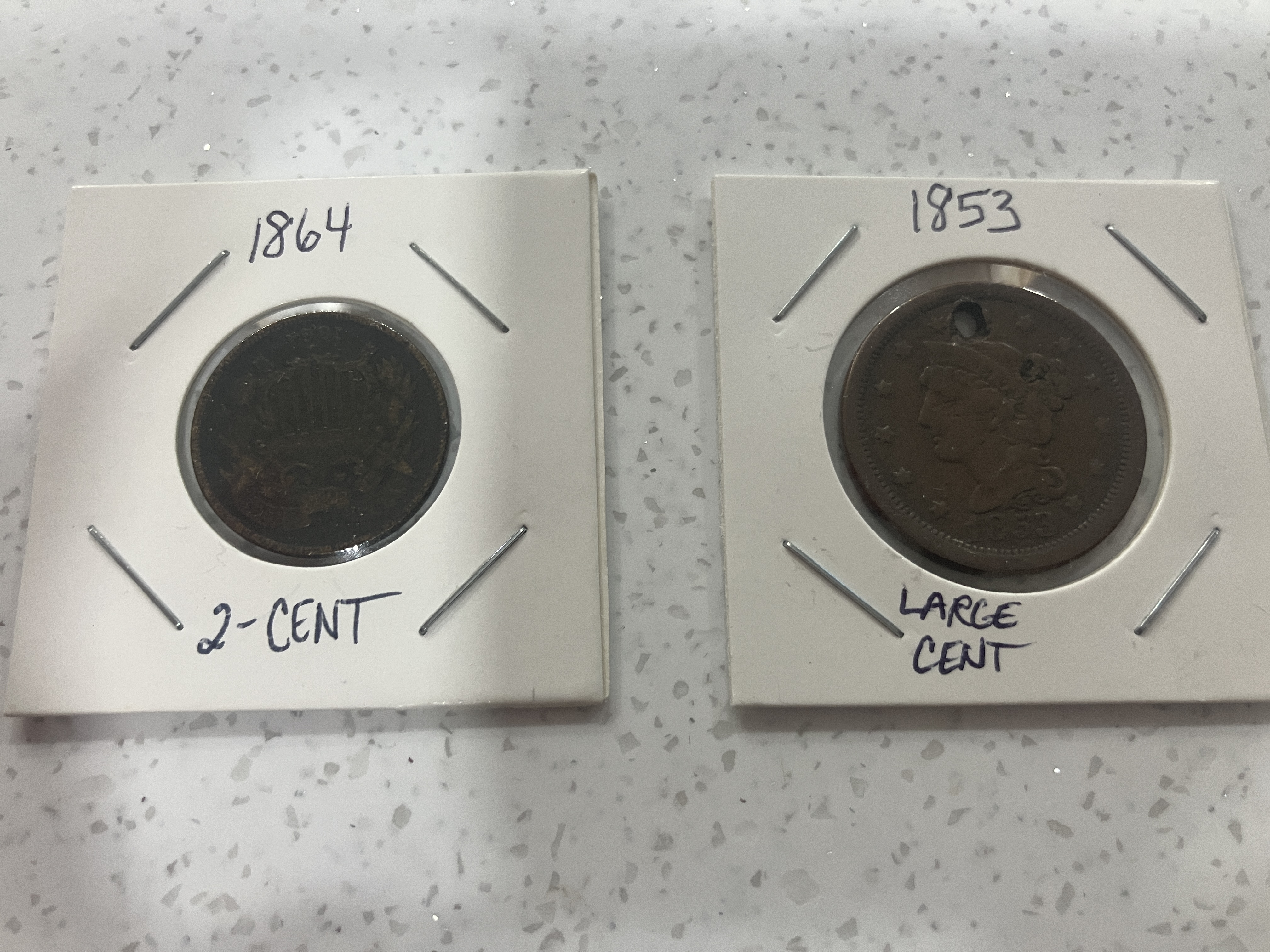 Large Cent: 1853 2 Cent: 1864