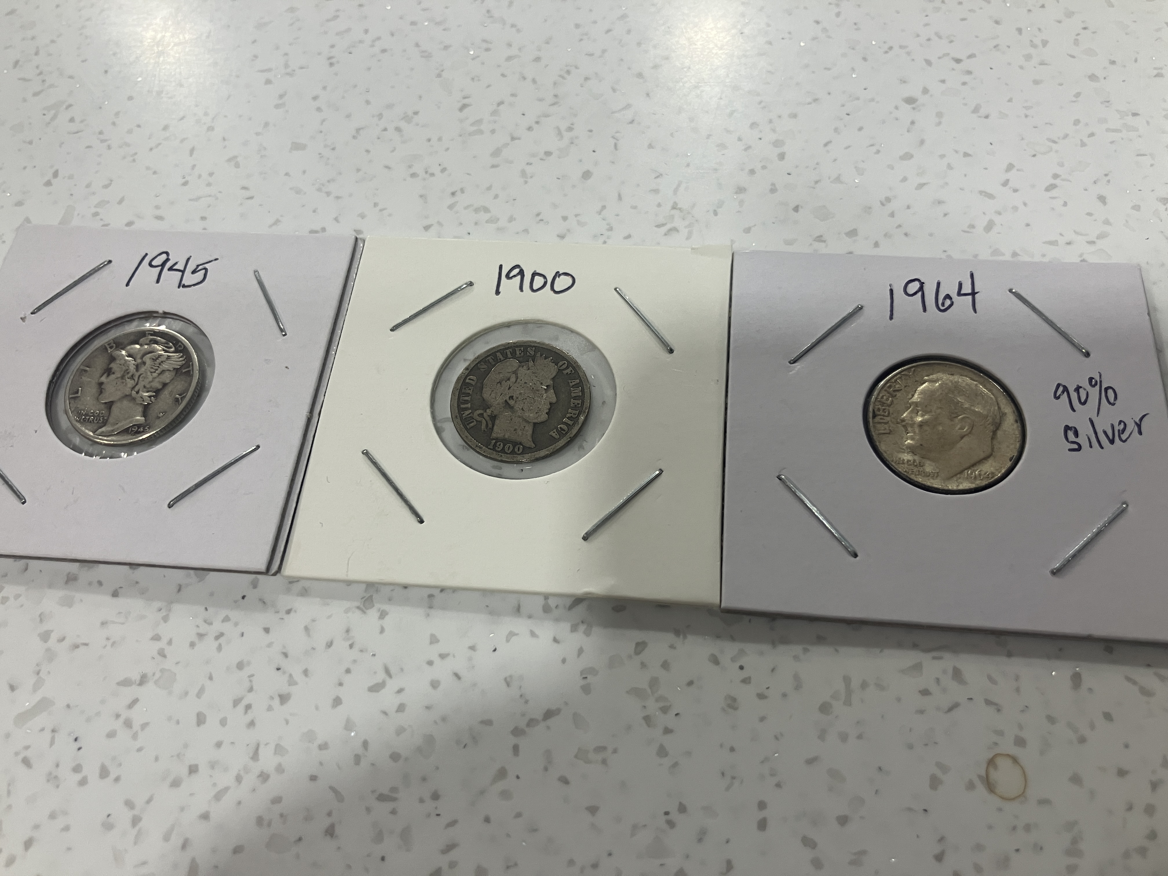 3 Silver Dimes from 1945,1900, and 1964.