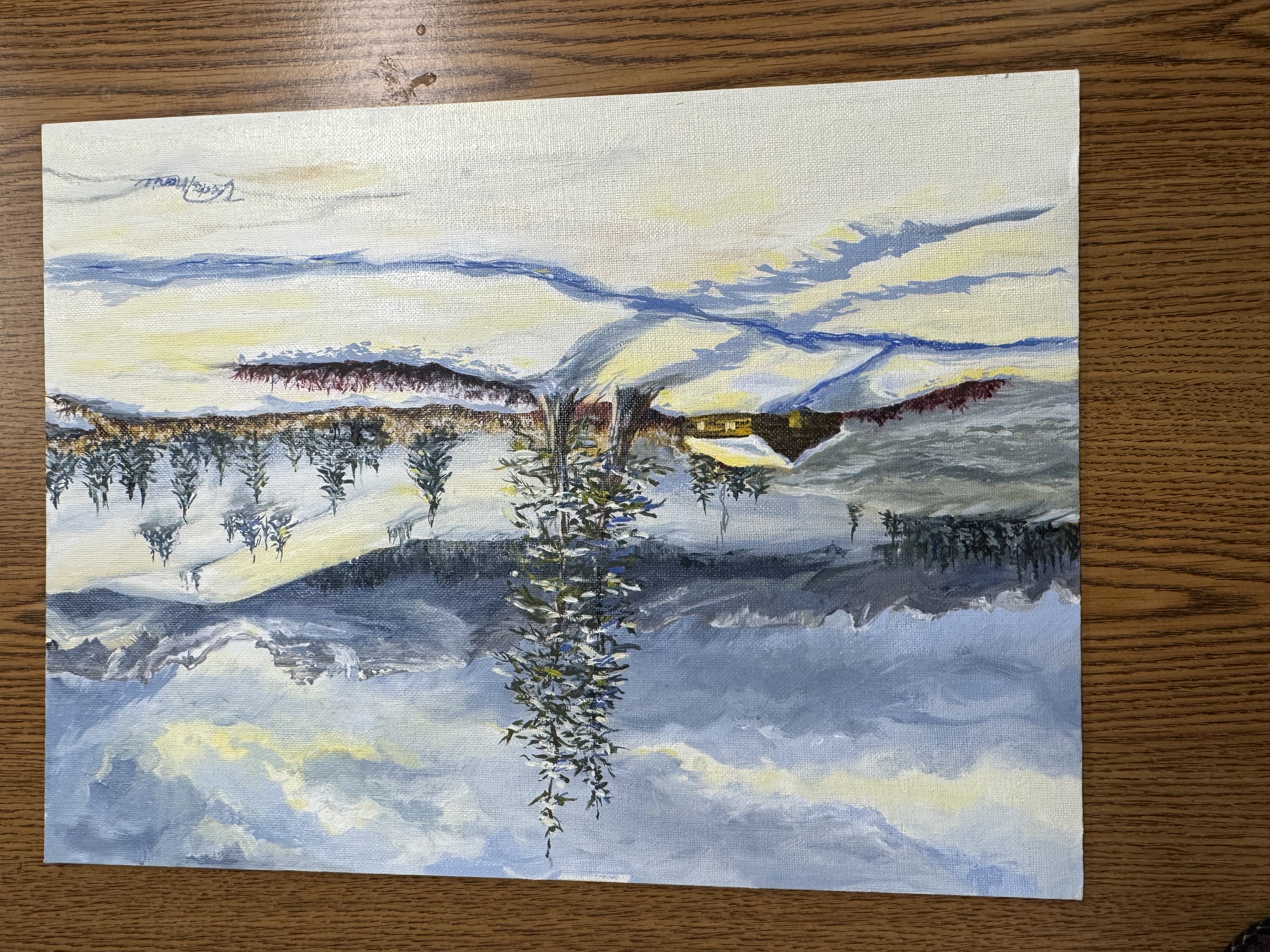 Mountain scentic painting in acrylic. Done by Veda Walker.