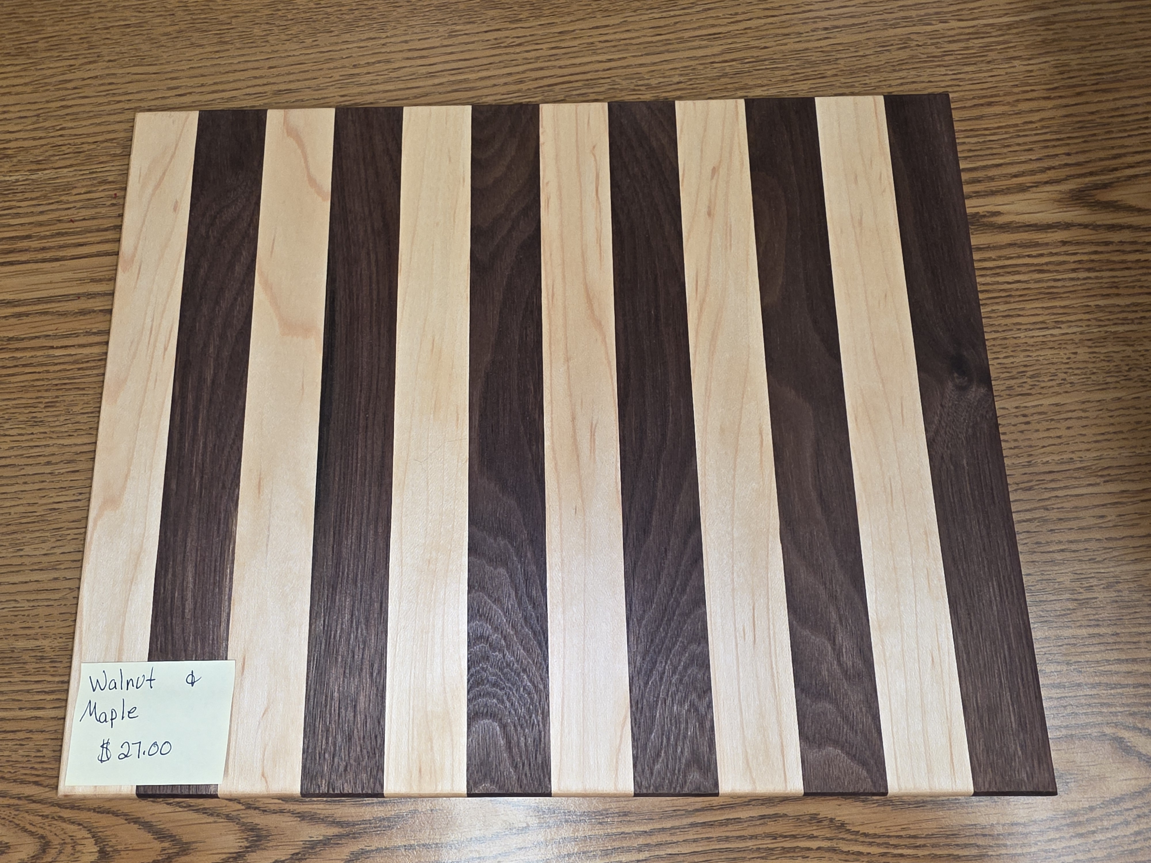 Cutting board made from walnut and maple. Made by the students in woods class here at Wind River.