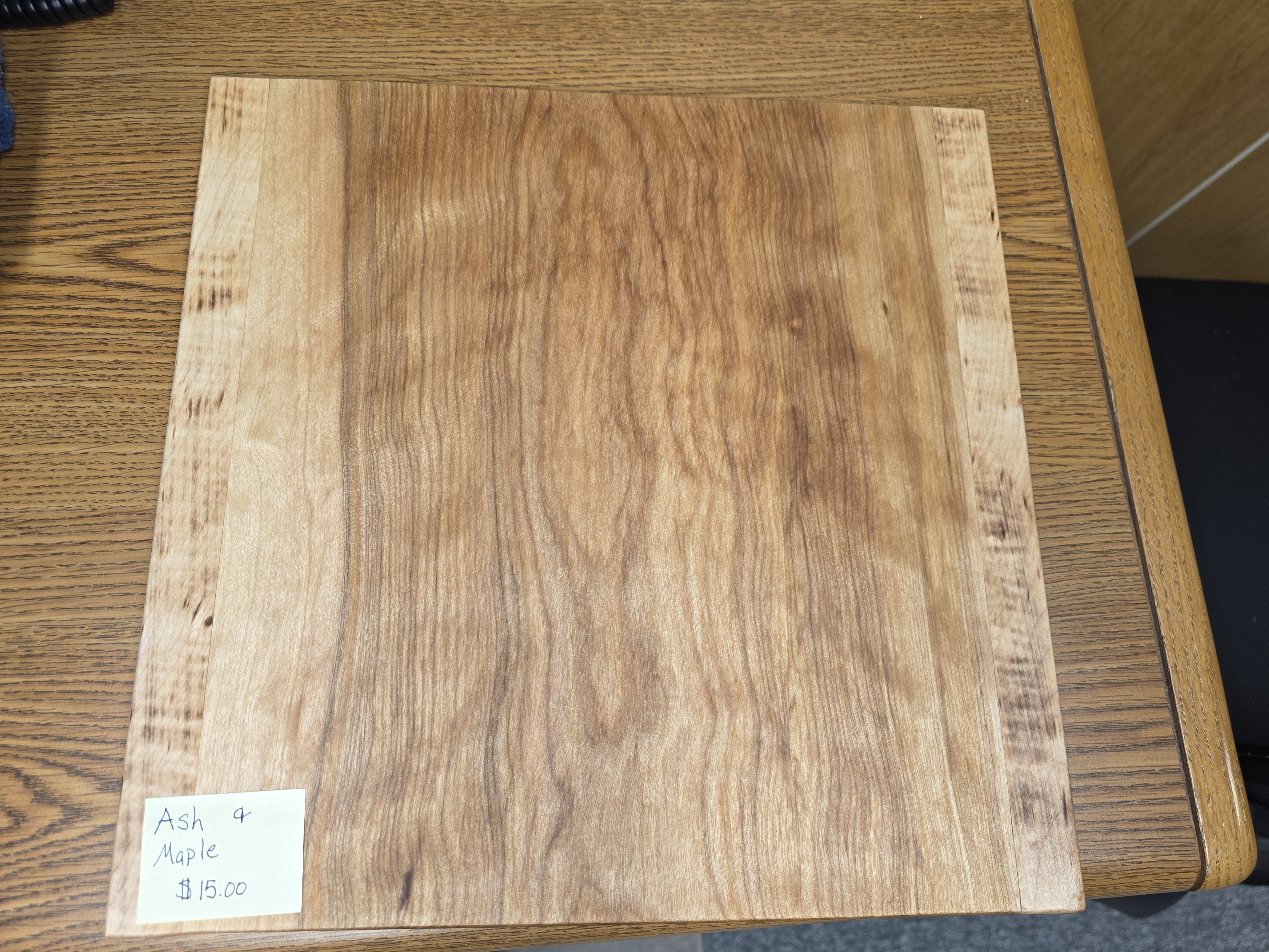 Cutting board made from ash and maple. Made by the students in woods class here at Wind River.
