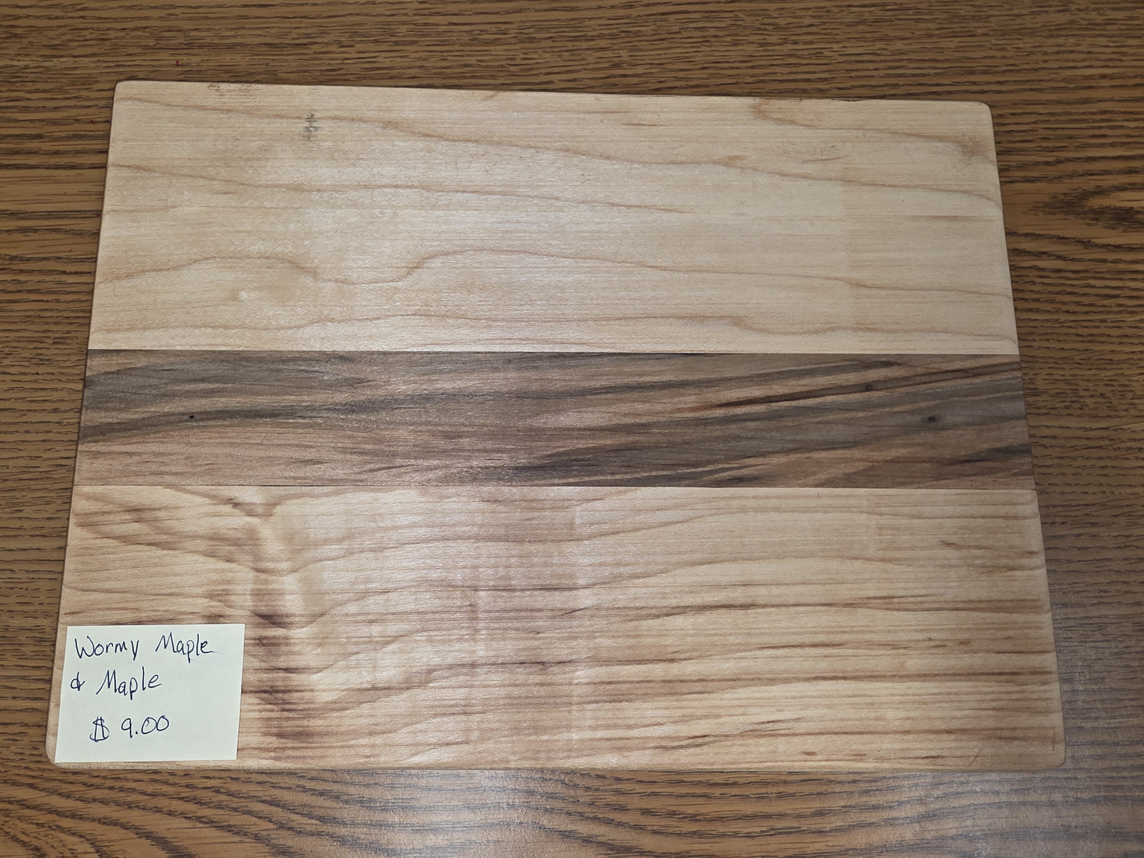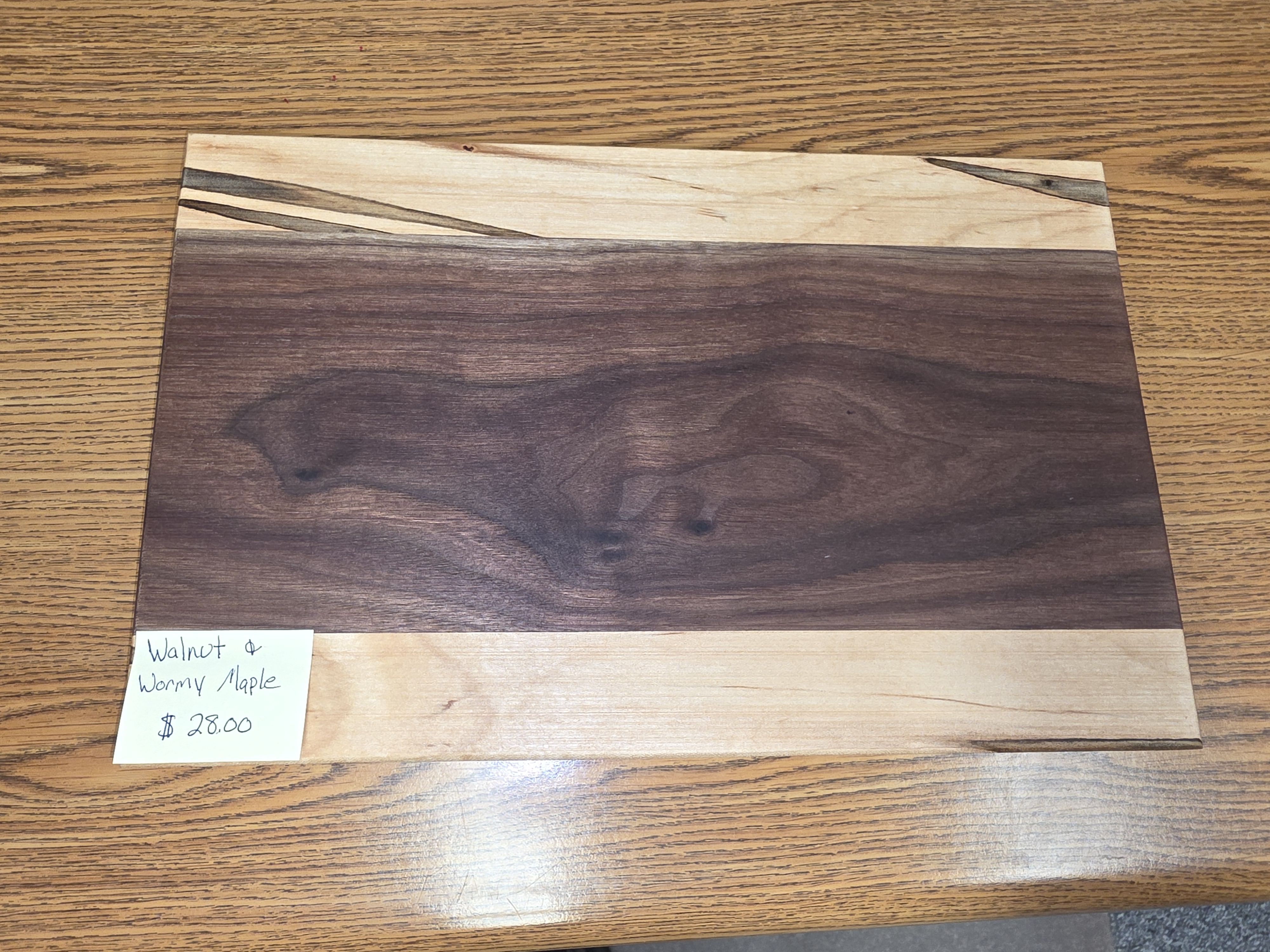 Cutting board made from wormy maple and maple. Made by the students in woods class here at Wind River.