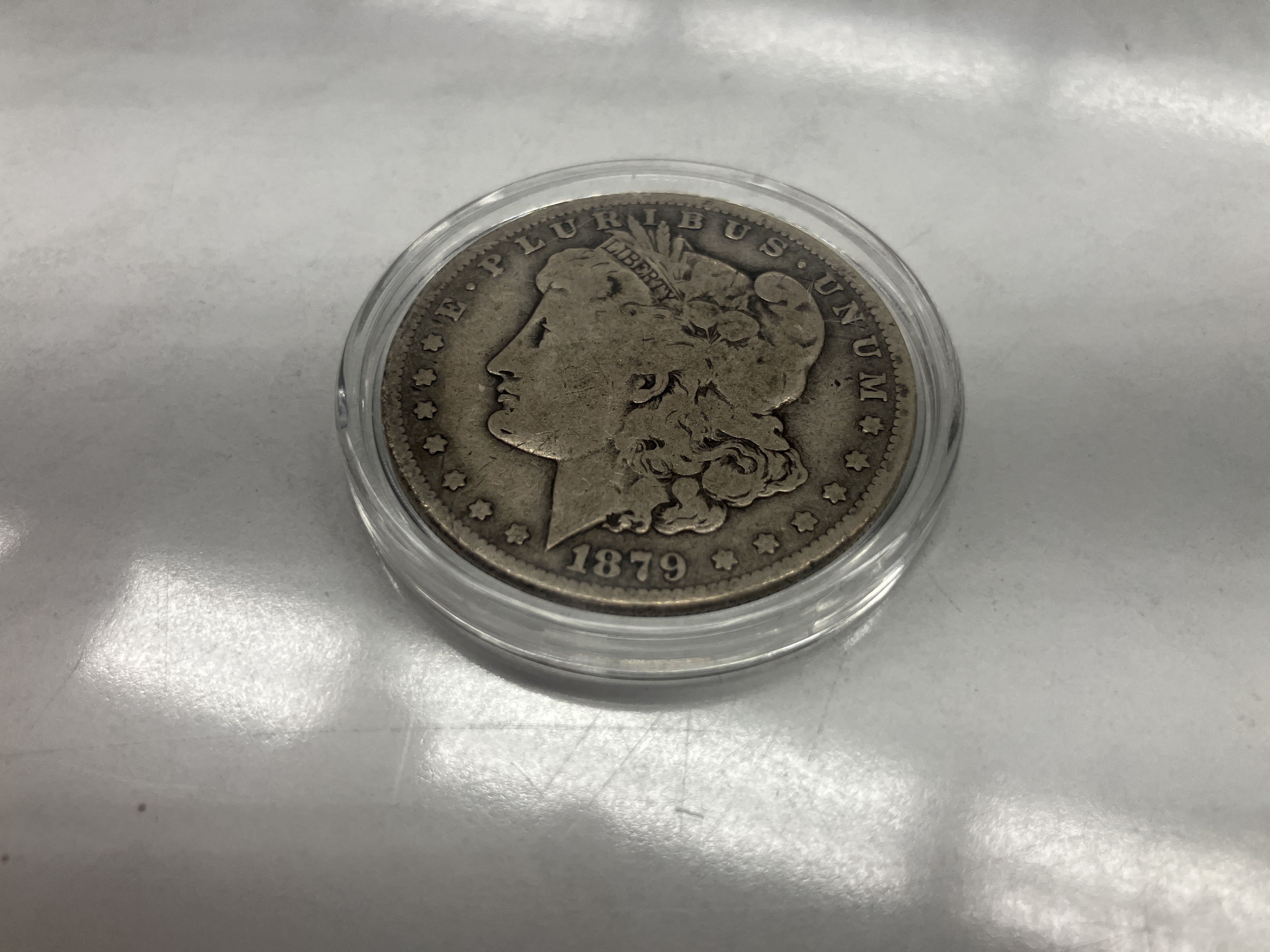 This is a 1879 Morgan Silver Dollar.